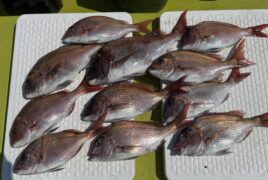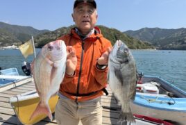手漕ぎボートで星野さんがマダイ、チヌをゲット。