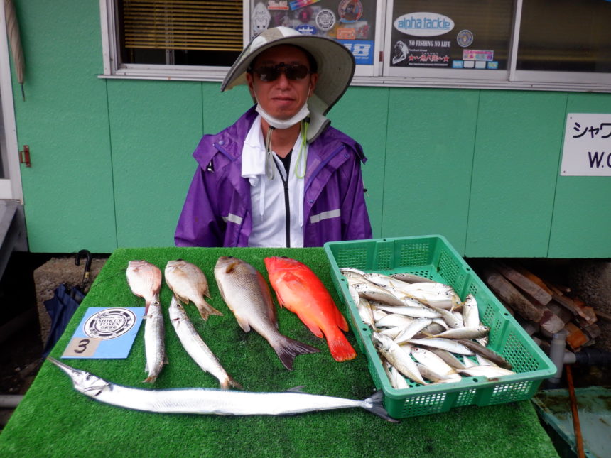 船外機ボートで奥山さんがシマアジ、ツバス、イサキ、カマスをゲット。