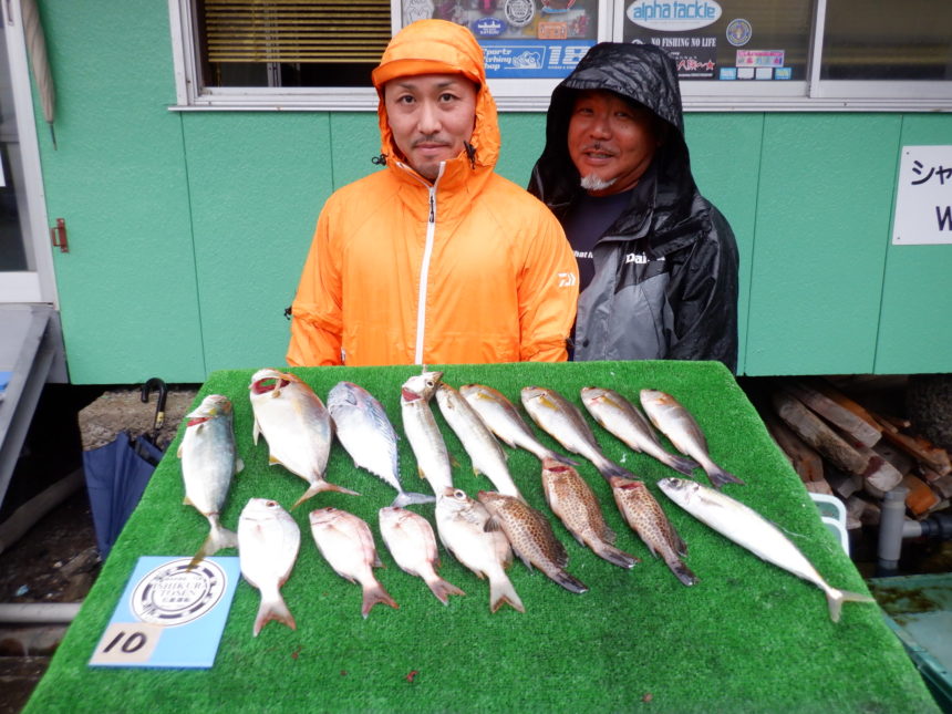 船外機ボートで藤巻さんがシマアジ、メイチ、ツバス、イサキをゲット。