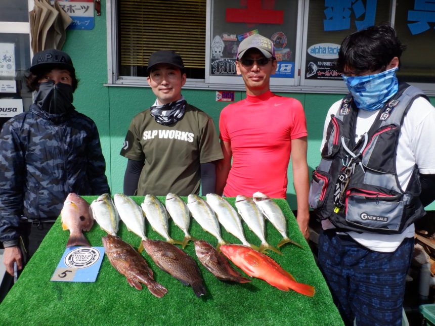 船外機ボートで奥山さんがシマアジ、ツバス、イサキ、カマスをゲット。