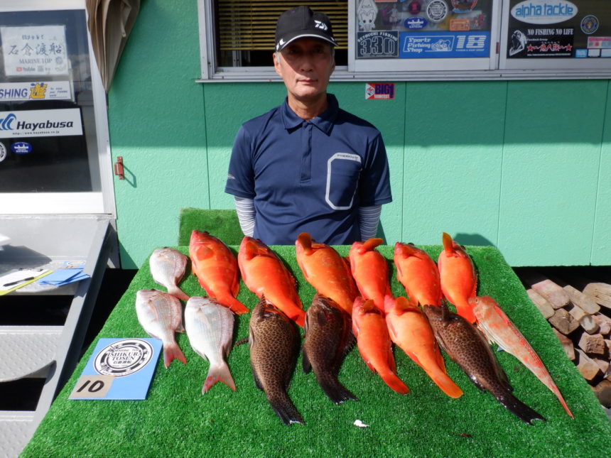 船外機ボートで冨森さんがアカハタ、オオモンハタをゲット。