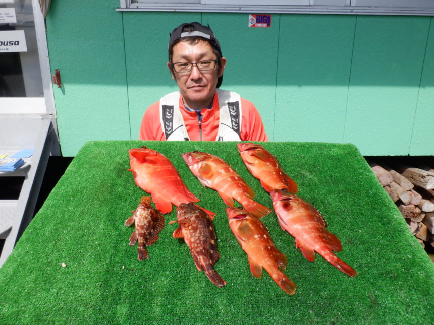 磯釣りで間瀬さんがアカハタ、カサゴをゲット。