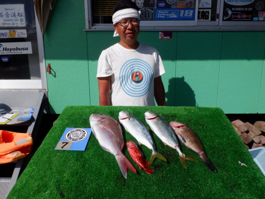 船外機ボートで藤巻さんがシマアジ、メイチ、ツバス、イサキをゲット。