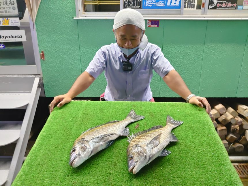 カセ釣りで小倉さんがチヌ45cmまでゲット。