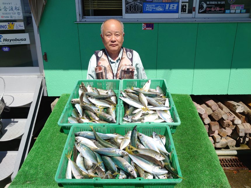 船外機ボートで藤巻さんがシマアジ、メイチ、ツバス、イサキをゲット。