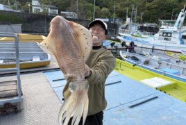 カセ釣りではしんちゃんがアオリイカ2.32キロをゲット。